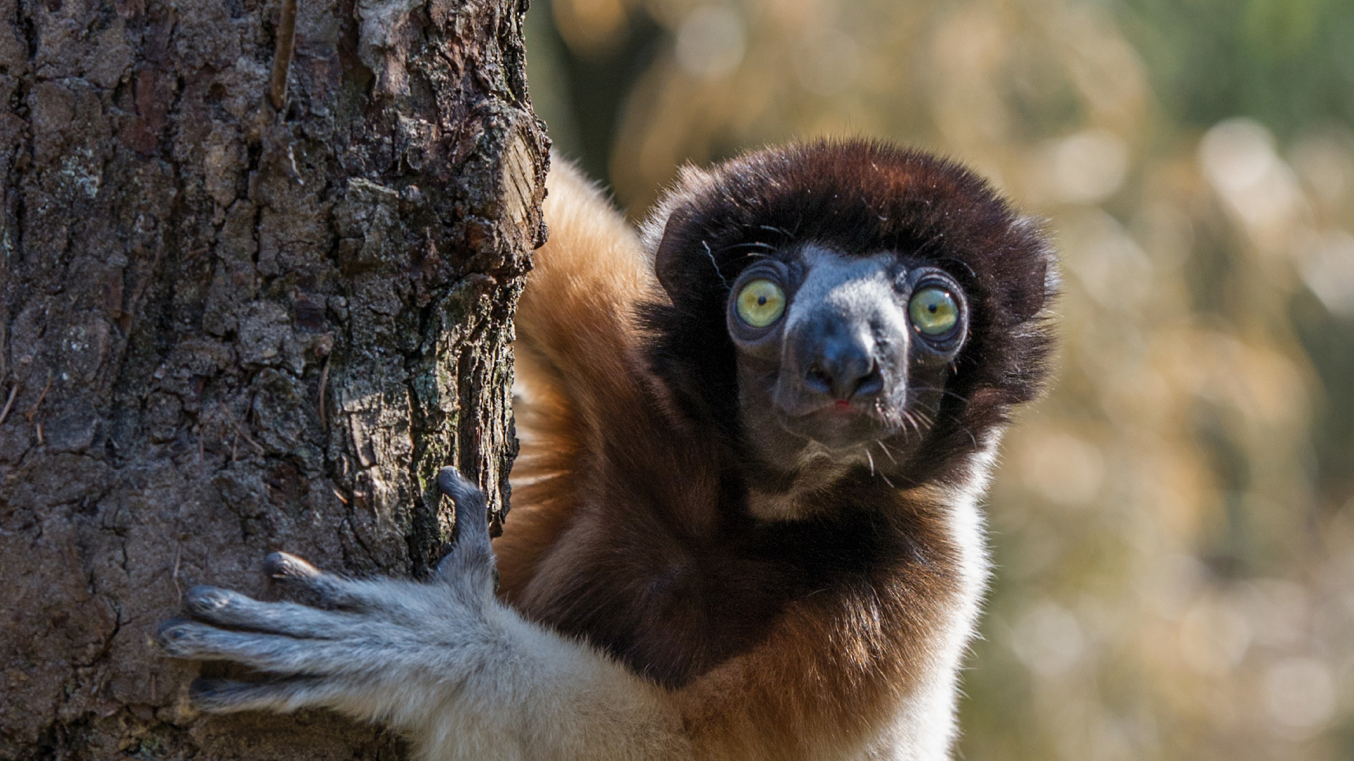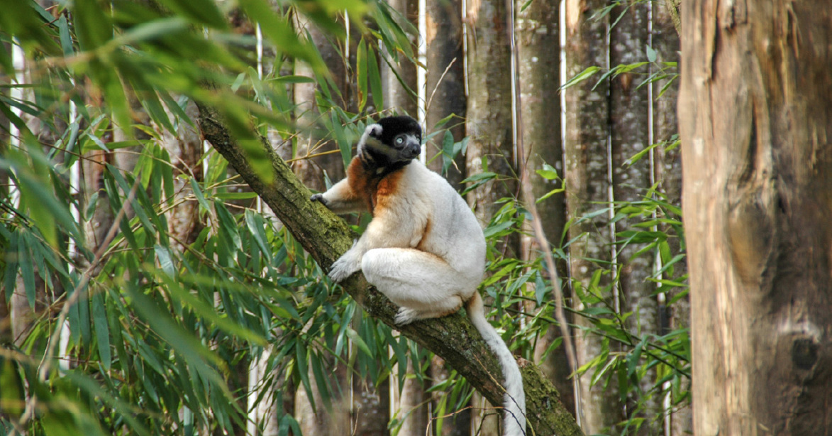 In the wild, crowned sifakas live on the island of Madagascar. There, they are mostly found in tropical, dry deciduous forests. Sometimes they venture into mangrove forests. Due to their ability to make enormous leaps, they can move extremely fast and they have no trouble jumping through prickly shrubbery. That’s because crowned sifakas have small, protective pads on their hands and feet.