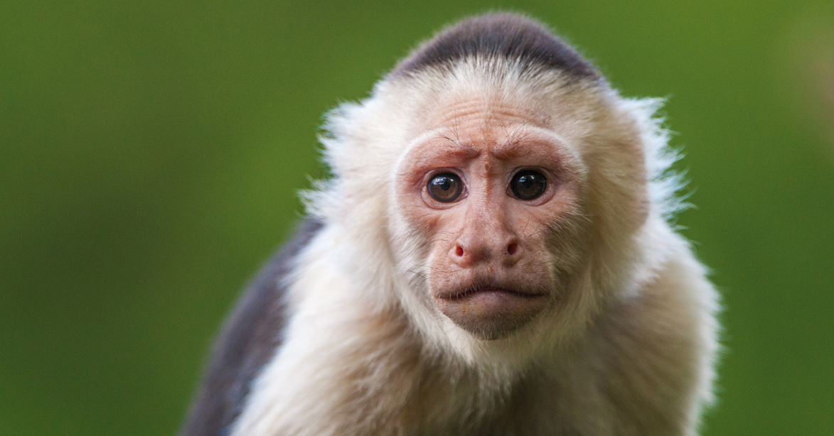 You can recognise Colombian white-faced capuchins by the white fur on their shoulders, chest and face. The rest of the body is black and relatively slender build. On top of their round heads they have a black cap. These animals have very expressive faces.