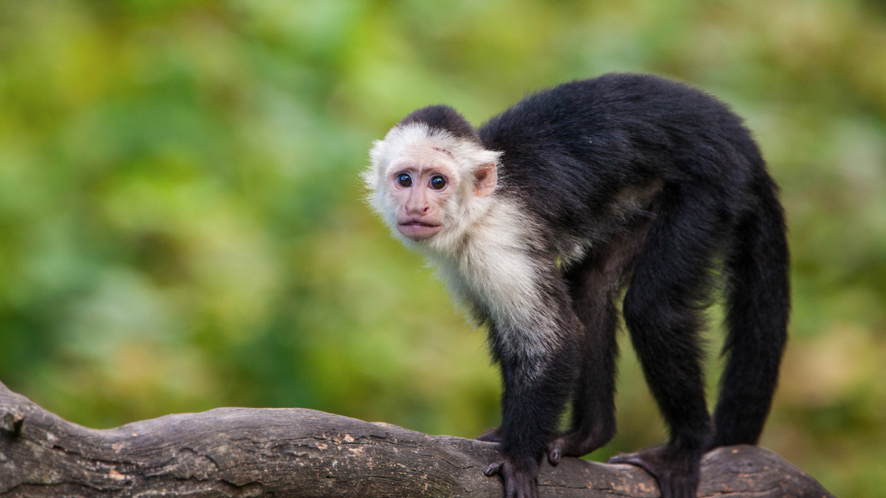 You can recognise Colombian white-faced capuchins by the white fur on their shoulders, chest and face. The rest of the body is black and relatively slender build. On top of their round heads they have a black cap. These animals have very expressive faces.